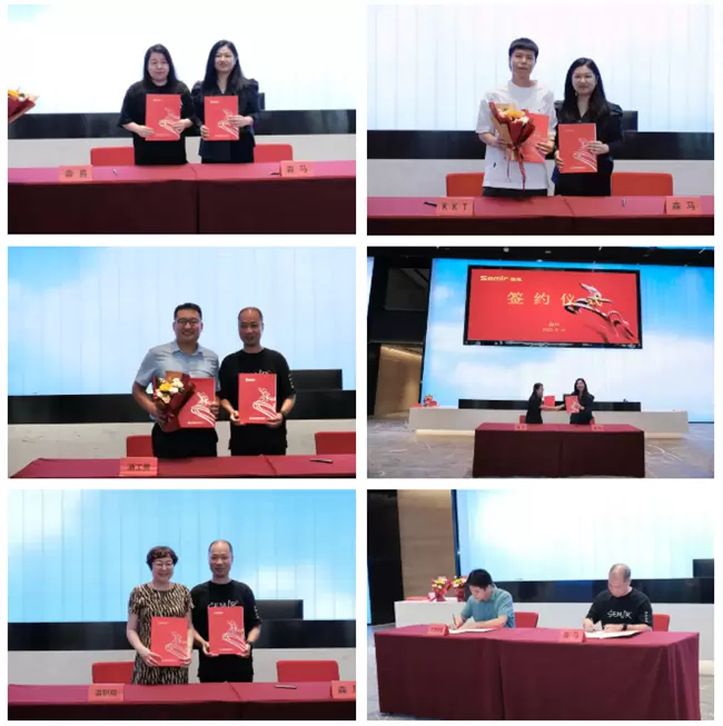 随后,森马服饰直播事业部总经理韩丹和副总经理蔡跃锐代表森马分别与合作客户、合作学校进行了签约仪式,旨在发挥各方优势,聚合资源协同发展,共同打造区域内乃至全国有影响力的直播基地,推动当地直播行业发展,助力温州和周边直播经济共同发展。