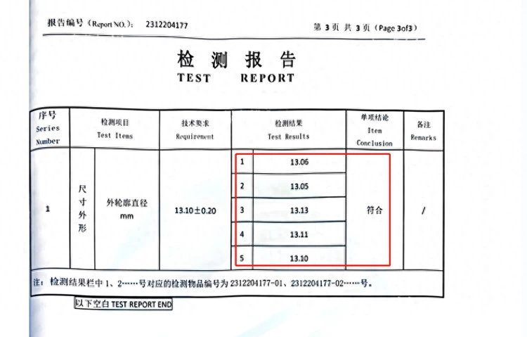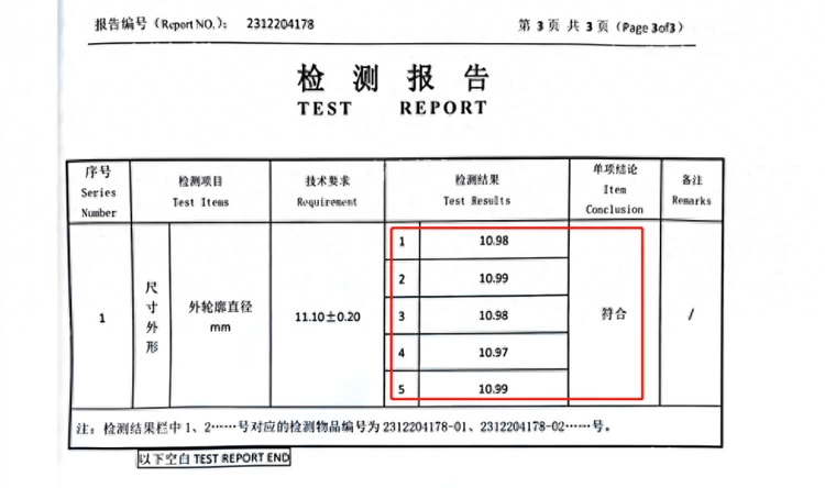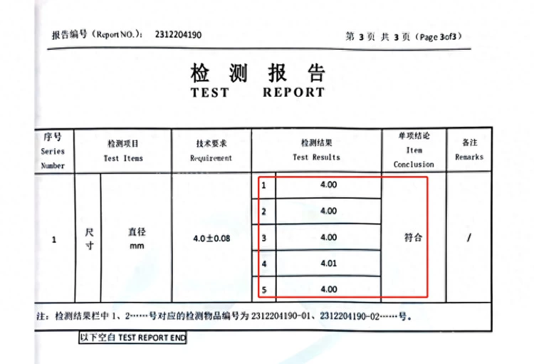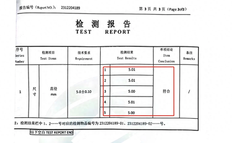 4.0mm、5.0mm两种型号螺旋筋随机检测结果为全部合格(以下为检测报告截图)。