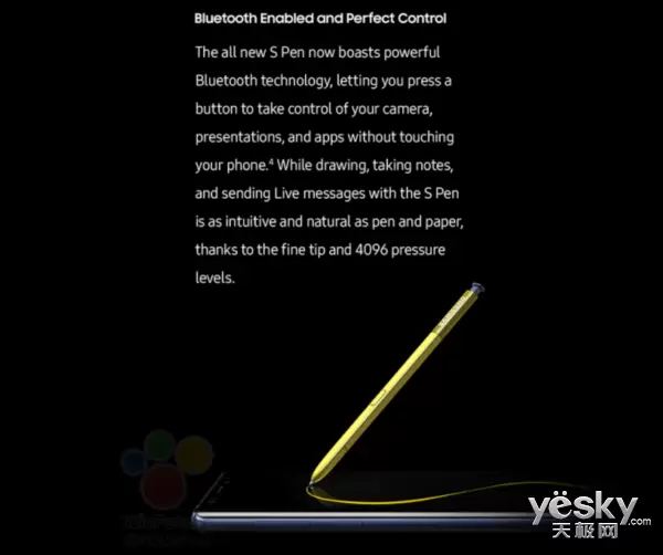 日前,一批三星Note9的官网详情页面截图提前被外媒WinFuture曝光,可以说这款安卓机皇从此再无任何秘密可言。根据曝光图显示,三星Note9的S Pen支持蓝牙控制可以说是板上钉钉的事情了。