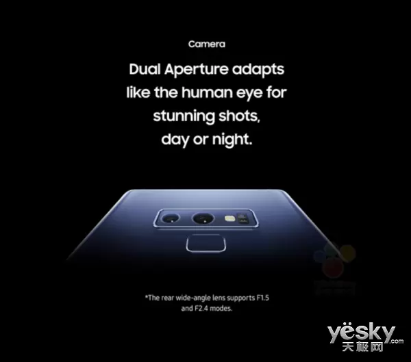 而在相机方面,也确认了三星Note9将支持S9同款的双光圈功能,即广角相机支持F1.5和F2.4智能切换,光线充足的环境下维持F2.4,暗光下则切换到F1.5,专业模式下则支持手动切换。