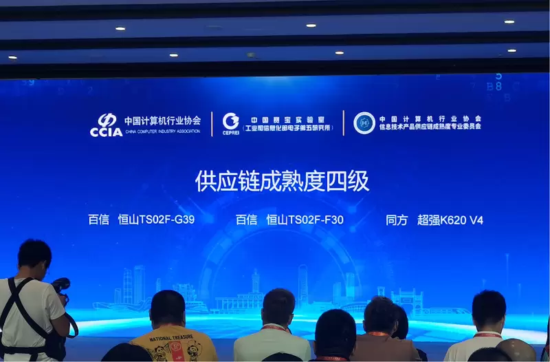 供应链专委会2023年7月~8月开展的服务器供应链成熟度评估工作中,一批优秀的企业脱颖而出,经过层层评估,在本次论坛上,供应链专委会为参与试点评估的7家整机企业共10款服务器产品颁发首批服务器供应链成熟度等级证书。其中,鲲鹏2家合作伙伴的3款服务器产品:百信恒山TS02F-G39、百信恒山TS02F-F30及同方超强K620 V4获首批证书中最高等级——成熟度四级。自2019年发展至今,鲲鹏计算产业以软硬件全栈能力全面赋能合作伙伴,帮助他们不断提升自主创新能力。本次2家伙伴被供应链专委会高度认可,意味着基于鲲鹏构建的底层硬件、基础软件到上层行业应用的全产业链条已见成效。未来,鲲鹏将持续投入,带动产业链上下游,助力信息技术产业持续健康发展。