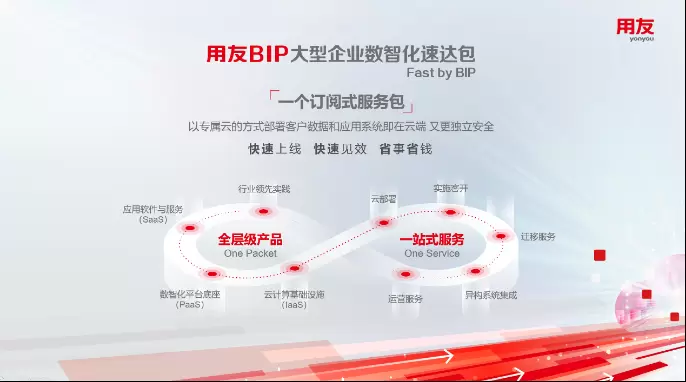 目前,在基础设施(IaaS)领域,用友已经分别与华为云、阿里云、腾讯云发布用友Fast by BIP联合方案,将以专属云的方式部署,让大型企业在数智化转型的过程中,既享受公有云的快捷灵活和专业化保障,又能获得专属空间的独立安全和个性化服务,从而降低业务上云难度,并“低成本”实现全天候、专业式、伴随式的管家式运营;在应用服务(SaaS)领域,用友也积极携手包括金融以及行业的ISV合作伙伴,打造预配置的行业资产服务包,深度满足大型企业的数智化需求。