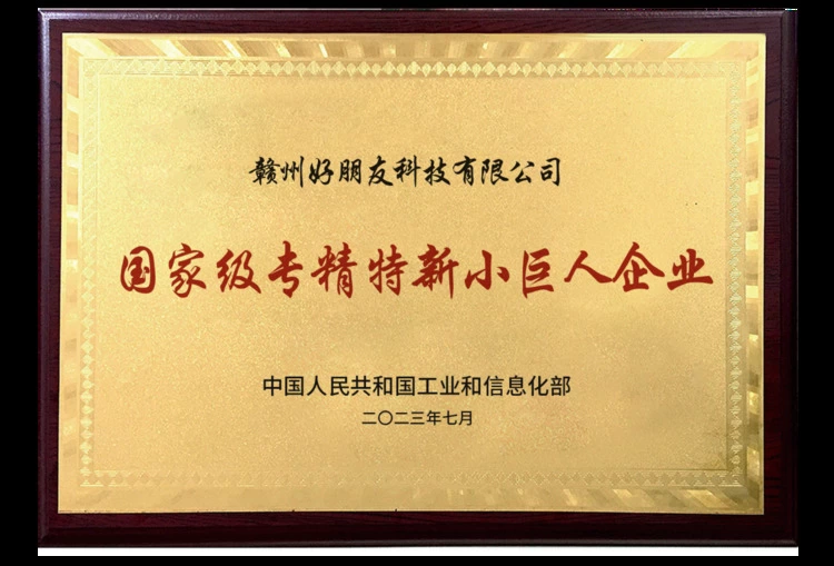 工信部第五批国家级专精特新“小巨人”企业公示名单出炉。赣州好朋友科技有限公司成功通过国家专精特新“小巨人“企业认定,荣获国家级专精特新“小巨人”企业称号。这个殊荣是对好朋友科技多年来不懈追求卓越的肯定,也是业界和社会大众对好朋友科技企业实力的认可。