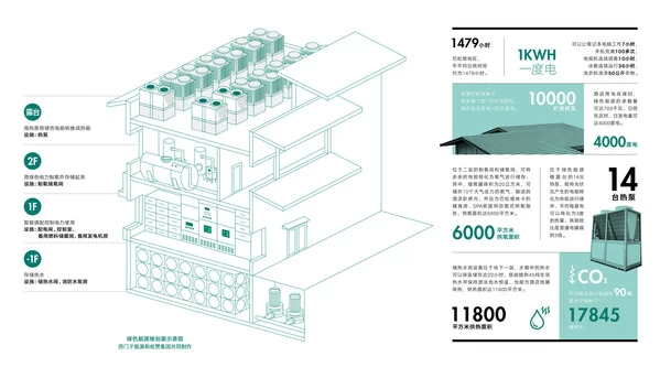 根据西门子能源的总体规划设计,松赞巴松措林卡充分利用酒店屋顶铺设光伏瓦实现绿色供电,并利用空气源热泵将电能转化成热能为酒店热水、地暖、泳池等提供稳定供热,有效减少电网电力及其他能源消耗。巴松措地区海拔3480米,针对酒店供氧这一地域性需求,西门子能源还设计了"光伏+空分制氧"的解决方案,为酒店客房提供弥散式供氧。由于光伏发电具有日间、季度不平衡问题,酒店同时配备储热、储氧等设施对光伏能源进行本地消纳和存储利用,使酒店最大化实现绿色能源的自主供应。