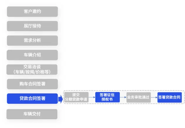 通过法大大新一代数智化签约管理平台实现与销售管理系统的快速对接,可实现客户在线快速签署征信授权书、贷款合同等合同文件。顾客完成购车合同签署后,提交分期贷款申请,销售管理系统调用法大大合同模板接口生成征信授权书,顾客完成征信授权书签署。分期贷款业务审批通过后,系统自动生成贷款合同,顾客完成贷款合同签署。