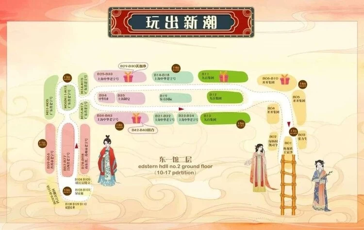 此外,博览会联动网易集团,推动其旗下传媒、游戏业务版块与老字号跨界整合,赋能老字号品牌焕新。在现场互动环节,更是推出一系列丰富的活动,如“国潮乐园派对”“汉服体验官”等。展会入口派发“国潮乐园派对”游园图,观众可以沿着参展路线打卡,至地图上礼物标注区,与老字号品牌互动,完成打卡任务,获赠精美礼品。