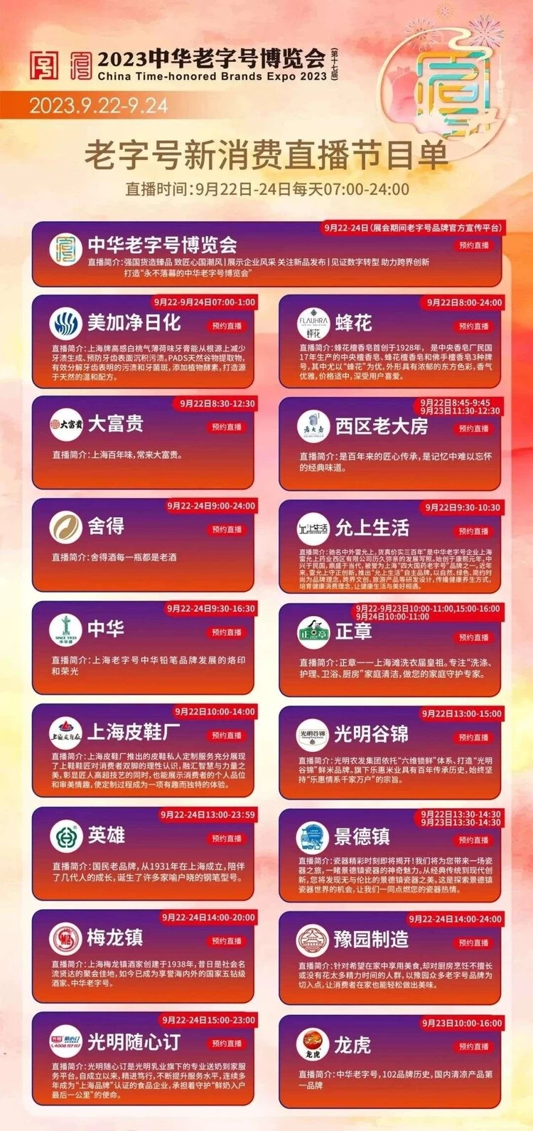 在中秋节、国庆节双节来临之际,由商务部、上海市商务委、上海市经济信息化委、黄浦区人民政府、静安区人民政府共同指导,黄浦区商务委、静安区商务委支持的第十七届上海中华老字号博览会于9月22日至24日在上海展览中心东一馆举行。