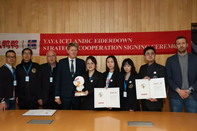 伴随着音乐的响起,模特身着鸭鸭2023冰壳系列缓缓走出。此全球首件冰岛雁鸭羽绒服一经出场,吸引所有人的眼球。在羽绒原料的选择上,鸭鸭率先使用北欧殿堂级羽绒(全球最珍贵的羽绒)-冰岛雁鸭绒。据了解,今年6月,鸭鸭走进冰岛国会,与冰岛政府达成深度战略合作,成为官方认证的中国最大雁鸭绒采购品牌。