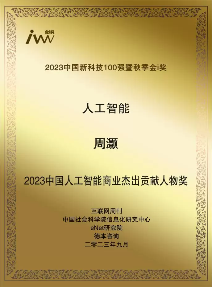 AI公司量化派创始人周灏荣获2023中国人工智能商业杰出贡献人物奖