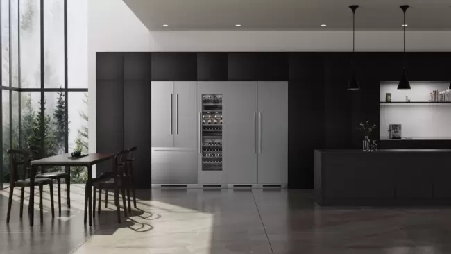 不仅如此,西门子studioLine系列冰箱也重构了建筑美学空间。4个基础款产品可以自由组合,满足多场景需求,从经典的多门冰箱,到单冷藏+单冷冻+多门冰箱+酒柜的丰富组合,最高容量可达1623L。如此一来,专业的嵌入设计让超大容量的冰箱也能隐入厨房,轻松定制用户专属的奢华保鲜墙。而凭借此次出色的设计,西门子studioLine系列冰箱斩获了双料设计奖,是名副其实的“实力与颜值并存”。
