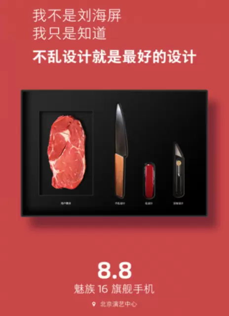 7月30日第三份发布会邀请函来了,这次终于是正经的发布会邀请,不过形式却让人匪夷所思。里面有一块塑胶材质打造的“肉”,然后有三个凹槽和一把刀,原本是应该有三把刀的,但应该是考虑到快递运送和法规要求的原因,大部分邀请函当中只有多功能刀或者美工刀。分别对应的是“没有设计、乱设计、不乱设计”并且写到:不乱设计就是最好的设计。应也是暗示魅族16外观比较朴素,不会胡乱设计外观。