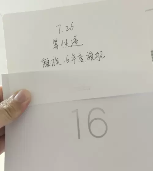 最早,魅族发布魅族16的邀请函,一个白色大信封上面印刷数字16,毫无疑问已经确认是魅族16手机发布,但就不直接说出来。信封内卡片上只有简单的几个字“7月26日,等快递,魅族16年度旗舰”,以为是正经邀请函,但没想到只是一个预告。