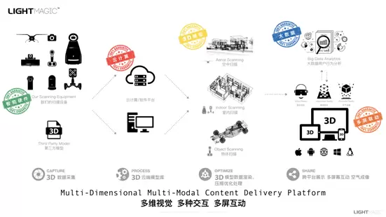 康云科技以视觉智能、三维引擎为核心技术,研发高门槛微米级别的三维智能建模扫描设备及多屏互动展示。其技术着眼于新近兴起的三维数字化建模环节,通过图像处理、计算机视觉算法,提供基于软件、智能硬件、云计算的互联网三维数字化建模展示平台,大幅降低三维模型建模时间,制作超高精度的裸眼三维模型,赋予人类视觉从2D走向人工智能3D的全面升级,进入视觉智能2.0时代。