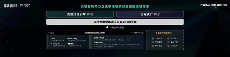 在大模型加速发展的时代,数字北极星3.0也更进一步,基于自研的流程大模型精调语料智能归纳引擎,全面引入为流程管理而生的大语言模型,建立了一个能够用自然语言交互的平台,员工只需要直接询问这一平台就能获得覆盖全面且精准的流程数据甚至洞察报告,极大地降低了企业全面进入流程智能时代的门槛。