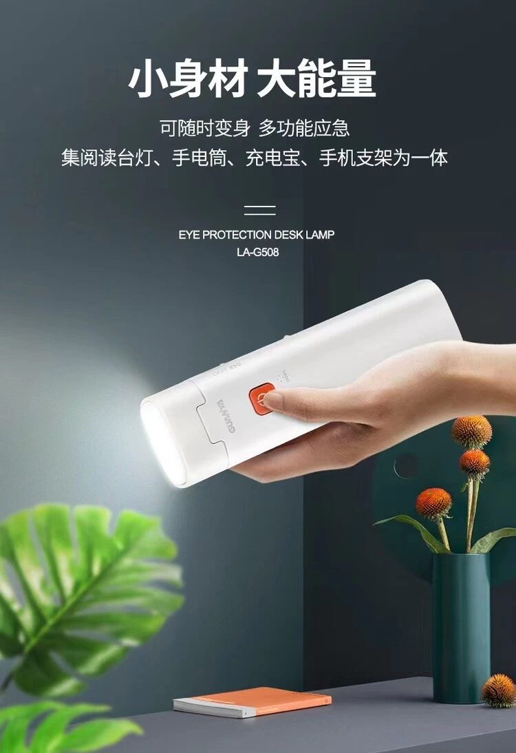 冠雅多功能护眼台灯LA-G508是一款伸缩两用的充电照明灯具,是高度集成、移动便捷,集护眼台灯、手电筒、充电宝、手机支架等多功能一体化的创新设计,具有体积小、功能多、品质优、可伸缩、绿色低碳的产品特性,亮相开幕式主席台正是发挥其移动便捷、精准局部照明桌面的独特功能作用。
