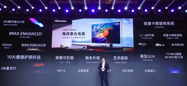日前,海信发布了全球首款120吋可折叠激光电视L5K,为追求超百吋大屏极致影音体验的用户带来全新选择。
