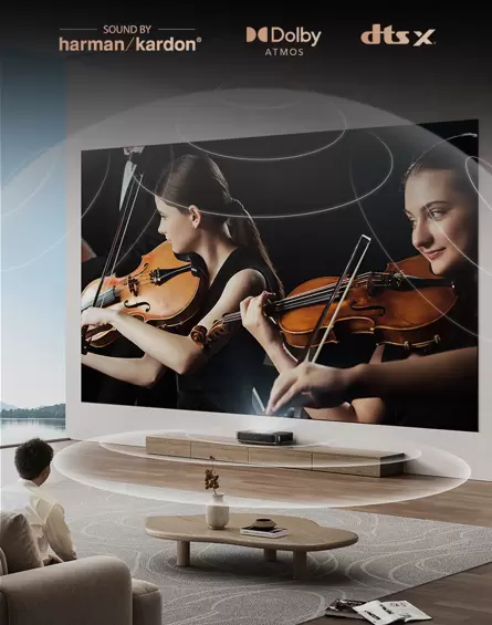 海信可折叠激光电视L5K采用与高端激光影厅同源的激光显示技术,在海信LPU数字激光引擎的加持下,拥有和高端激光影厅一样的极致色彩表现。另外,海信为L5K的影音效果还叠加了很多Buff,它是海信第二款获得IMAX ENHANCED认证的激光电视新品,声音方面全套定制哈曼卡顿音响系统,7个扬声器,3路功效,全系功率可达100W,再搭配360°环绕立体声场,综合视听体验可达影院级,还原电影原色原声,为追求极致观影体验的用户提供视听盛宴。