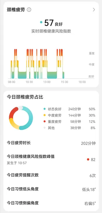 华为智能眼镜2在帮助用户高效生活工作的同时,也关注用户的健康问题。通过与中山大学附属第一医院康复医学科合作,为用户带来全新升级的颈椎健康2.0功能。颈椎疲劳指数能够更科学反映用户用颈习惯,结合实时监测与提醒功能,为佩戴者带来全天候的颈椎健康关怀。