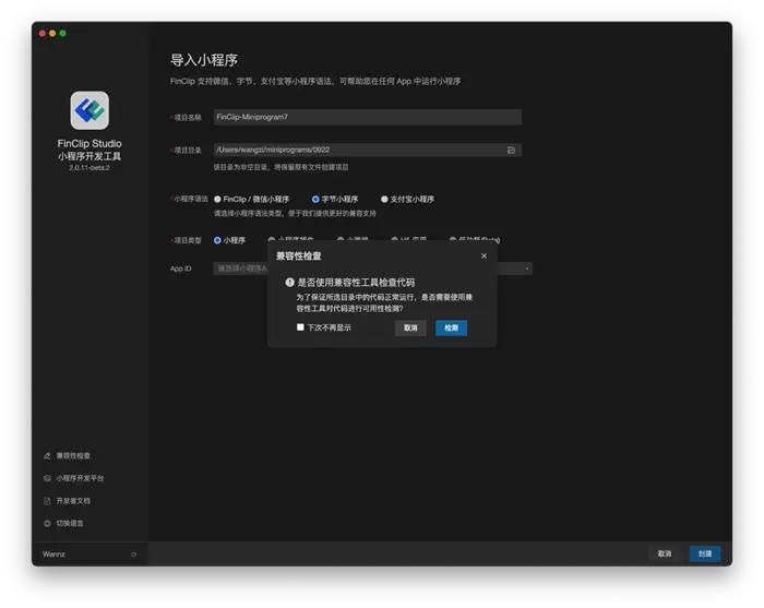 自从 FinClip Studio 上线后,我们收到很多开发者对于“支持兼容抖音小程序与支付宝小程序”的需求反馈,现在 FinClip Studio 对抖音小程序和支付宝小程序的全面支持功能已经正式上线!