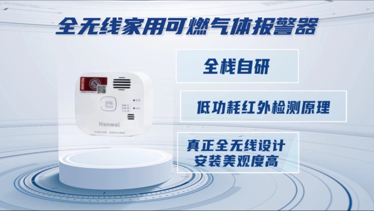 全无线家用可燃气体报警器则是基于自研的低功耗红外传感器,它采用无线通讯/无线控阀全无线设计,具有寿命长、精度高、免维护、抗干扰能力强等特点。