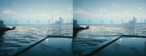 通过对比图可以看出,NVIDIA DLSS对游戏的帮助很大,特别是在光影塑造方面。在开启DLSS技术后,游戏中的光影更符合现实,画面的质感得到进一步提升。