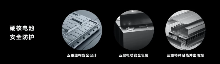 问界新M7部分车身结构采用了业内最强潜艇级超高强度钢,每平方厘米可承受17吨重,通过CBS复合车身材料,提升了5倍抗弯能力,主打一个任你狂风暴雨我自波澜不惊。同时强化新能源专属安全,电池采用五重结构安全设计、五层电芯安全包覆、三重特种耐热冲击防爆等技术,同步采用云端 BMS 电池管理系统,可以对电池进行实时监控、实时分析,实现全天候保护。给用户从里到外的被动保障。