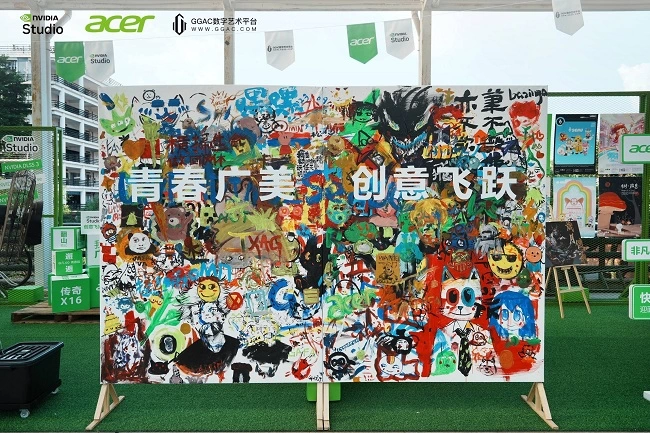 在新学期开始之际,宏碁携手NVIDIA Studio及数字艺术平台GGAC,在广州美术学院开启快闪创意活动,为广美学子带来了一场数字革命的盛宴。活动开设多个区域,到场学子可以体验到宏碁基于NVIDIA Studio平台打造的超强创意设备,同时能够在欣赏共创作品之余,利用现场提供的彩笔在画板上进行自我表达。此外,现场更有宏碁提供的免费电脑检修,专属购机优惠等活动福利,让参加活动的学子感受创作乐趣之余,切实领略宏碁的品牌魅力。