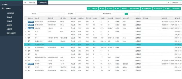 公路舱单管理系统,主要包含了公路预配舱单,重车确报、空车确报,落装、改配等操作,确保了预配舱单数据源的准确性,减少因人工失误带来的损失,且实现了数据的申报与回执的接收,方便快捷,提高了数据操作的整体效率。