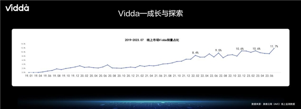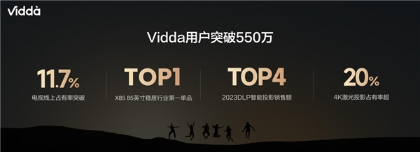 根据奥维云网数据,Vidda电视已实现线上占有率单月突破11.7%。从去年发力高刷电视品类以来,Vidda连续推出了X系列和X Pro系列产品,快速占领市场。其中的85英寸机型X85更是持续热销,多次成为单品销量冠军。