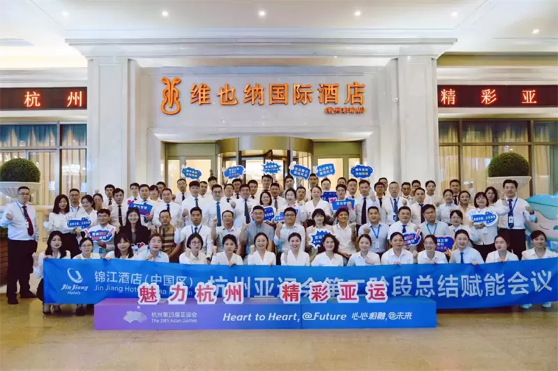 除了开展多轮专项品质检查,各类培训赋能也轮番上阵。7月-8月,锦江酒店(中国区)召开了两场大型赋能会,从品质提升、餐饮专项、服务接待、安全保障方面对相关酒店员工进行培训,浙皖区域全体员工更签订了品质安全“军令状”。此外,锦江酒店(中国区)还相继发布了《服务礼仪手册亚运版》及亚运服务要点等重要通知,并对核心酒店开展服务礼仪现场培训,提醒酒店做好日常接待中的“关键时刻”,提升住客满意度。