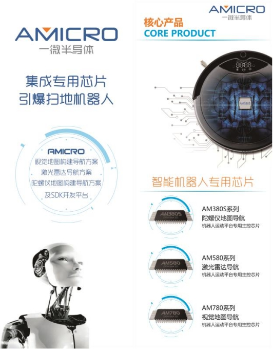 珠海一微,全名珠海市一微半导体有限公司,英文名 Amicro,是一家重点研发机器人核心SoC芯片及其人工智能相关核心算法,提供智能机器人运动控制整体解决方案的高科技公司,其智能机器人核心芯片的创新点是通过自主研发导航引擎、地图引擎、sensor处理单元、DSP处理单元等关键集成电路技术实现机器人运动人工智能的硬件化,同时,在专用核心SoC芯片的基础上,自主研发机器人运动控制、同步定位与自主导航、地图构建、机器视觉、模式识别、深度学习等人工智能算法,从而实现集成电路与人工智能的完美结合。目前珠海一微的芯片和算法已经在清洁类机器人实现100万台级别以上的量产,同时在陪护机器人,儿童智能玩具实现10万台级别的量产,并积极布局专用机器人如医院护理,机场服务等机器人领域。由此可见,核心技术的革新是产品销售的基石,一微半导体就是最好的案例。