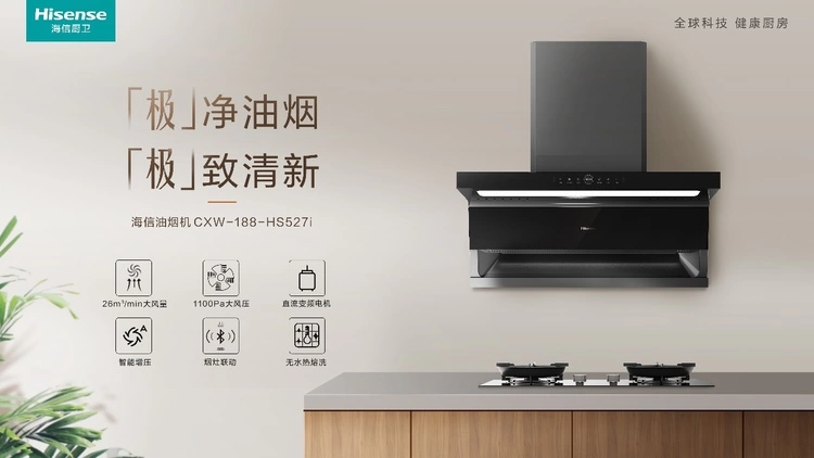 秉承“让场景融入生活”的理念,此次推出的海信吸烟机HS527i新品,除了可以尽快吸油烟无残留的26m³/min超大风量和1200Pa超大静压外,还创新地搭载了智能巡航增压系统。油烟机在工作的过程中可以自动巡航和感知公共烟道的阻力和变化,高效变频调节和智能控烟。低档、高档和爆炒档等多档变频吸力可轻松应对煎炒烹炸和煲汤炖煮等各种烹饪场景。
