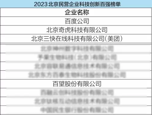 北京民营企业百强的“1+4”榜单由北京市工商业联合会联合有关部门发布,2023年,全市共有1851家民营企业参与调研,其中,“北京民营企业科技创新百强”以企业年度营业收入、研发费用、研发强度、研发人员为核心指标、高质量发展作为辅助指标,综合考量后评定。