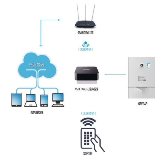 阿诗丹顿壁挂炉配置了基于WIFI技术的远程操控系统,只需要将壁挂炉的WIFI中央控制器与家里的WIFI网络连接,就可以通过手机等移动终端和阿诗丹顿专用APP随时随地智能控制壁挂炉的运行情况。