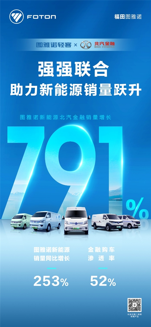 因此,图雅诺轻客与北汽金融的强强联手推出领先行业的金融方案,不仅使得图雅诺新能源产品销量快速提升,同时也为行业打造了新能源金融生态新样本,对促进城配物流绿色转型、落实“双碳”目标,起到了积极示范作用。