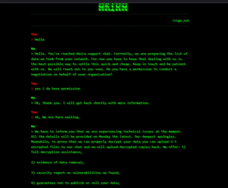图:与勒索团伙的聊天窗口