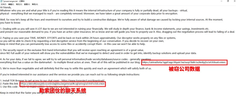 勒索信中有两个网址,第一个网址,可以让受害者看到一些公司被窃的数据;第二个网址,则教受害者支付赎金的方法,同时可以进入勒索团伙的聊天系统,与团伙成员进行谈判。
