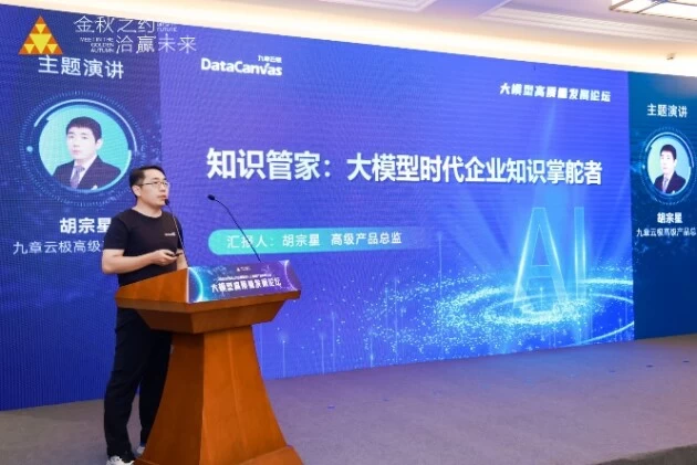 论坛上,九章云极DataCanvas公司高级产品总监胡宗星发表“知识管家:大模型时代企业知识的掌舵者”精彩演讲,深度剖析大模型时代全新的技术革新浪潮下企业知识体系建设面临的困境与挑战,并针对性地提出九章云极DataCanvas企业知识管家解决方案。