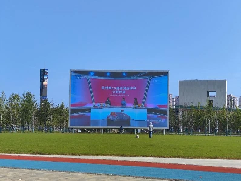 在杭州马拉松主题公园和直江公园,由海信商用显示打造的两块8K超高清观赛大屏已经入驻现场,吸引了市民的驻足围观。据悉,这两块观赛大屏采用户外专用的海信P2.5 LED屏,可实现8K超高清转播,还具备IP67防水等级,即使在阴天、雨天的天气下,依然能够清晰观看。从亚运会的火炬传递仪式、到美轮美奂的亚运会开幕式、再到赛事活动的转播,海信LED大屏为到公园休闲、游乐的市民提供了丰富直观的观看体验,让市民即使不在电视机前也不错过亚运精彩。