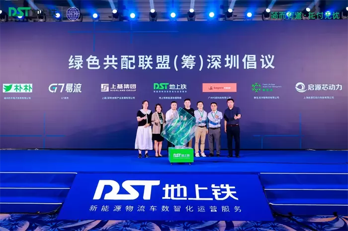 围绕国情民生现状以及市场发展和主管部门要求,地上铁携手行业企业,共同发起了绿色共配联盟深圳倡议。地上铁市场中心总经理金玮,广州代叔科技有限公司总经理王振飞,上基(深圳)创新产业发展有限公司副总经理周寒霜,福州朴朴电子商务有限公司运营总监曾厚军,G7易流副总裁杜创,鲜生活冷链物流有限公司首席运营安全官张集,上海启源芯动力科技有限公司副总经理栓柱,一起上台启动倡议仪式——共同配送,绿色先行,围绕人、货、车、场、路,推行统仓、集车、共配、高效司服、数字化联通,全力做到共享、共建、共赢。