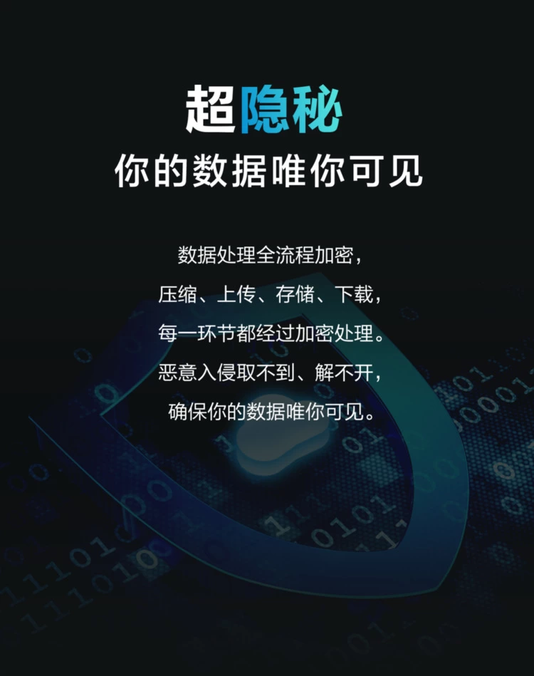 为了进一步确保数据上云后能做到不丢失,且不被破坏,云空间采用多副本冗余存储,相当于给数据做了多重备份保障,防止数据丢失或遭到破坏。此外,在云端存储时,云空间还会将文件“打散”,并分别使用密钥单独加密,,为数据安全上好最后一把锁。
