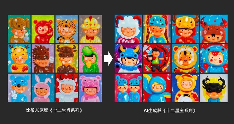 据介绍,文心一格是百度依托飞桨深度学习平台、文心大模型推出的“AI作画”产品,让人人皆可一语成画。文心一格还具备强大的小样本学习能力,通过定制化模型训练生成自定义模型,可以生成更加个性化和有针对性的AI画作。文心一格使用沈敬东的《十二生肖系列》作品学习其艺术风格,之后与艺术家联手共创,完成了《十二星座系列》等作品的创作,用流行文化的语言重新诠释传统生肖文化。