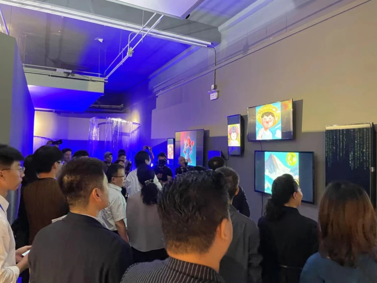 展览现场特设了“艺术家工作室”,观众可以沉浸体验艺术与 AI 的结合,亲身感受艺术家的创作过程,选择自己喜爱的艺术风格并亲自进行 AI 二次创作,深入理解艺术与 AI 的奇妙所在。
