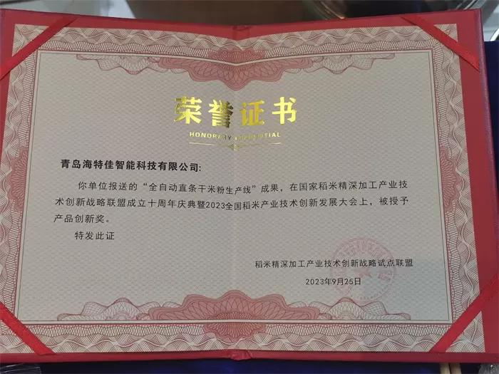 9月24日至26日,国家稻米精深加工产业技术创新战略联盟成立十周年庆典暨2023创新发展大会在湖北武汉举办。本次大会以“十年‘稻’路,创新未来”为主题,汇集了中国科学院院士张启发,中国工程院院士孙宝国、张洪程、胡培松等专家,以及300多位稻米全产业链的专家学者、企业代表共同出席会议,共同探讨稻米精深加工产业技术创新发展。青岛海科佳“全自动直条米粉生产线”获得各位专家评委的好评,在本次大会上荣获“创新产品奖”,并作题为《米粉智能化装备的发展与行业变革》的专题报告。