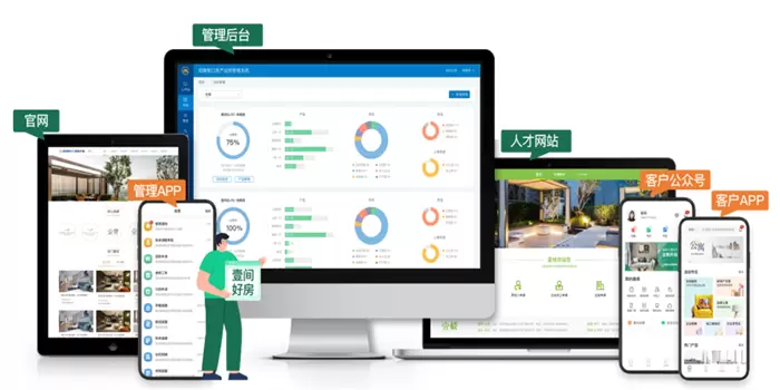 公寓数字化产品属于招商伊敦自研,覆盖了公寓租赁全流程、客户服务、营销等业务场景,1个业务管理系统,3个客户端,1个管理APP端。长租公寓已上线运营32个委托管理项目,8个品牌授权项目。