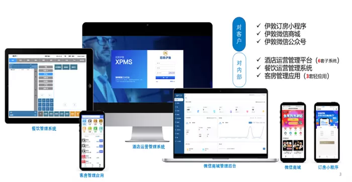 酒店数字化产品覆盖了酒店客房、餐饮、会所、储值以及线上商城等业务场景,对内涵盖7大业务管理系统、3套轻应用;对外涵盖3大直销渠道,累计上线5家酒店、6家服务式公寓以及6个精品商业项目。