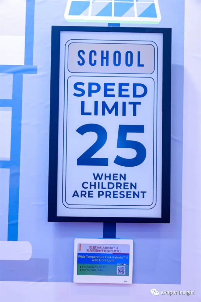 在智慧交通应用领域,元太科技展出13.3寸、25.3寸宽温E Ink Kaleido™ 3 Outdoor彩色印刷电子纸,应用于户外交通指示看板。其采用高分辨率彩色显示技术,能够呈现鲜艳生动的图像和文字,为用户提供良好的视觉体验。同时,它具有极低的功耗,只在更新显示内容时消耗电能,非常节能。此外,它还具备宽温度范围适应性,无需加装昂贵的高耗能加热或冷却设备,可在各种环境条件下稳定工作。