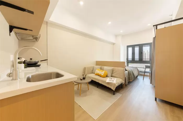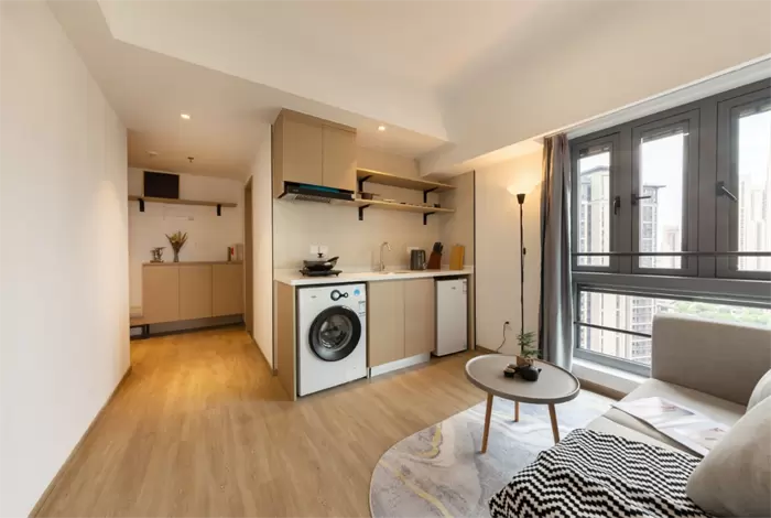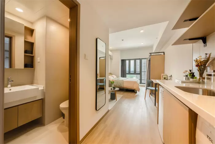 公寓有精致的装修和简约但不简单的布局、有品质的空间、优美的环境和美好的居住氛围。37m²-50m²多样户型满足多种选择,配置品牌家电家居,全景落地玻璃窗可收纳无限海景,还有超宽裕收纳空间和独立卫浴,拎包即可入住。在公区打造上,接待区、洗衣房、会议室、阅读室一应俱全,全方位打造美好生活。