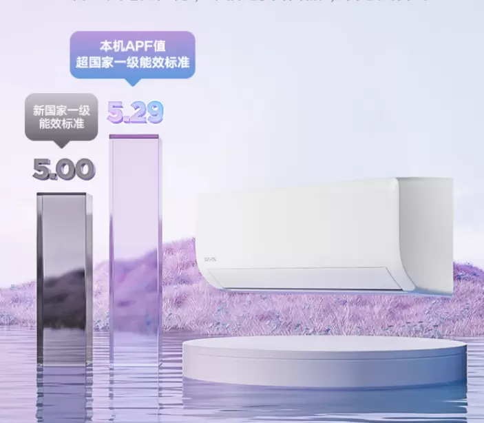 值得一提的是,这款空调开着还很省电!选空调一定得选这种一级能效的,耗电量跟普通的三级能效比起来起码差一倍。这款空调的APF值就达到了5.29,远远超过了国家一级能效标准,调成ECO模式后还能更省电。