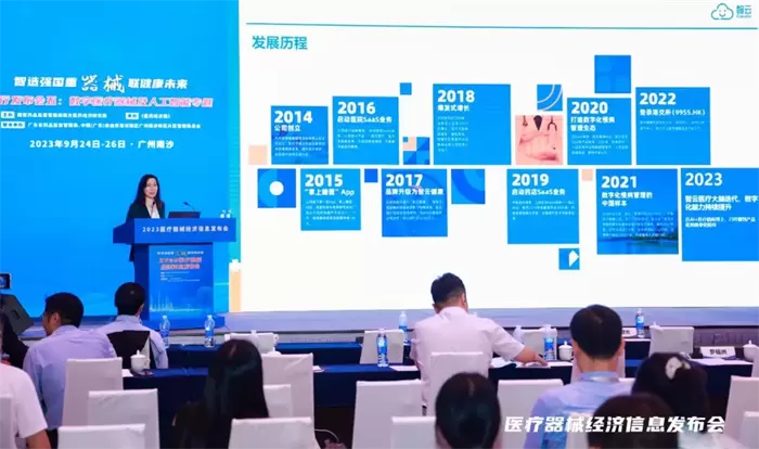 在“数字医疗器械及人工智能专题”论坛上,智云健康副总裁杨文琳受邀出席并做主题演讲,与参会嘉宾分享智云健康在数字医疗领域的多元布局与取得的创新成果,共同探讨交流人工智能时代数字医疗产业发展的“创新处方”。